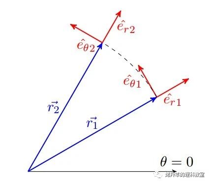 \[\boldsymbol{e}_r = {\cos\theta \choose \sin\theta}, \qquad \boldsymbol{e}_\theta = {-\sin\theta \choose \cos\theta} \qquad (6)\]读者可以自行验证: