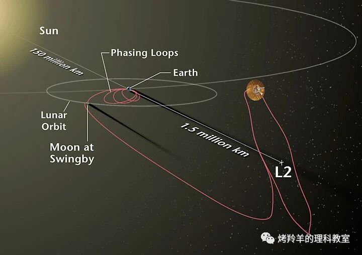日地系统的 \(L_2\) 点也被诸如 NASA 和 ESA 放置空间天文台。宇宙学领域无人不知的探测微波背景辐射(cosmic microwave background, CMB)的两颗探测器,WMAP 和 PLANCK 就被放置在日地系统的 \(L_2\) 轨道。 即将于2021年发射升空的詹姆斯·韦伯空间望远镜(James Webb Space Telescope, JWST)——哈勃太空望远镜的接任者——也将被送入日地系统的 \(L_2\) 轨道。