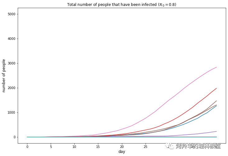 首先是 $\mathcal{R_0} = 0.8$ 的模拟。