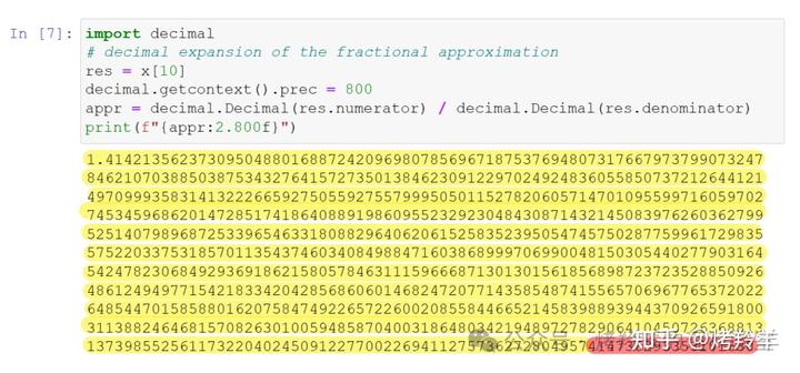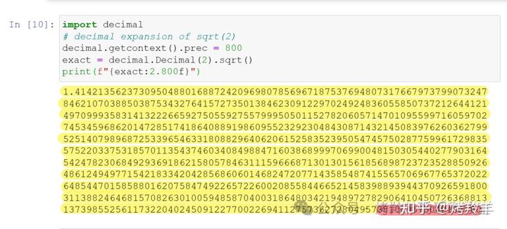 当然,我们也可以狠狠算一波 \(\sqrt{2}\) 的十进制展开,一样是用了 decimal 的库。