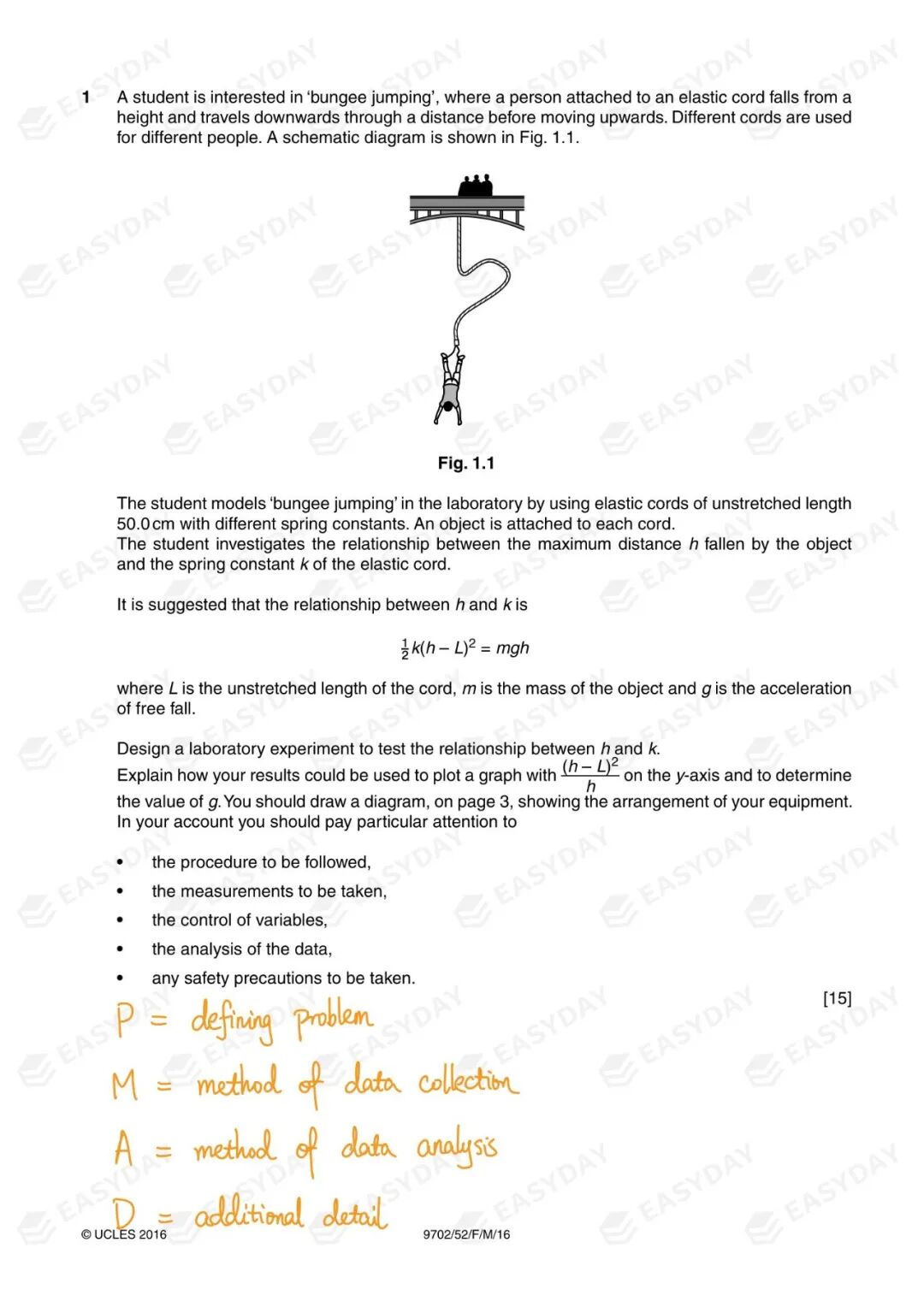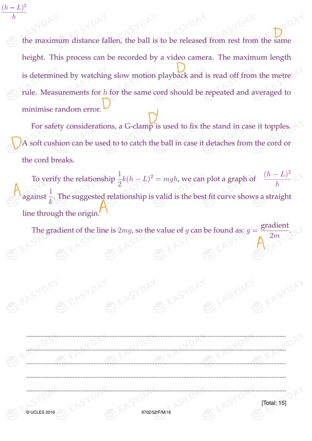 我个人的建议是,额外细节直接融合在上述问题定义、实验操作和数据处理的部分中一起写掉。在社交媒体上,有很多老师分享的范文中,会像官方评分标准那样把 Additional Details 单摘出来一条一条地写,我对这样的教法是非常反感的。对于考试拿分没啥问题,但是我觉得任何有基本科学素养的人都不会按这种结构来写实验设计方案。一气呵成的实验设计方案,就应该是从定义问题,到叙述每个相关的物理量该分别如何测量,最后阐明收集到的数据进行怎样的处理可以验证某个关系。