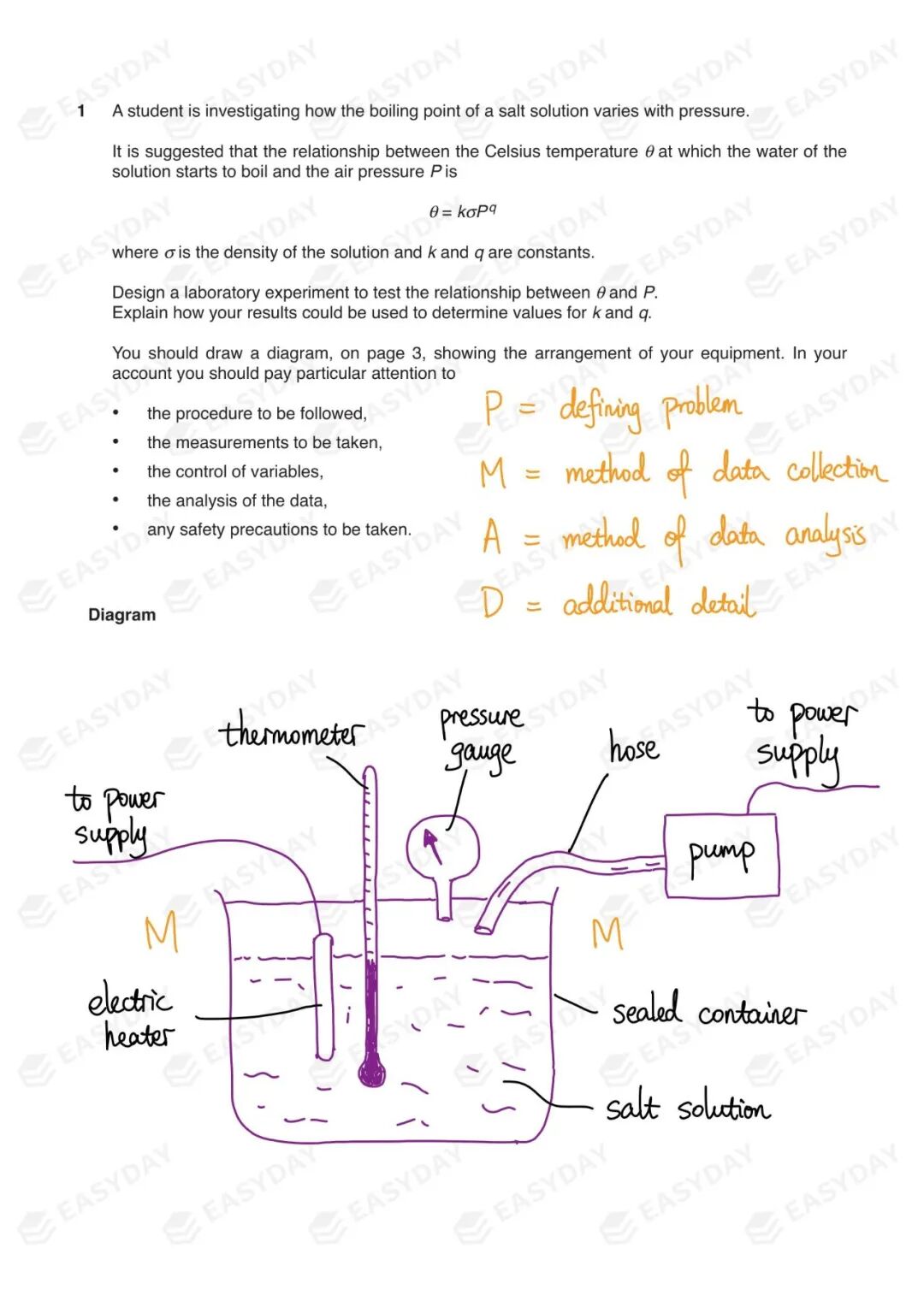 首当其冲的,就是装置的示意图(labelled diagram)。仪器的名称、放在哪里使用,全都可以在示意图上标出。这张图画得好,文字部分甚至只需要很少的笔墨,就可以把实验步骤阐释清楚,从而拿到高分。