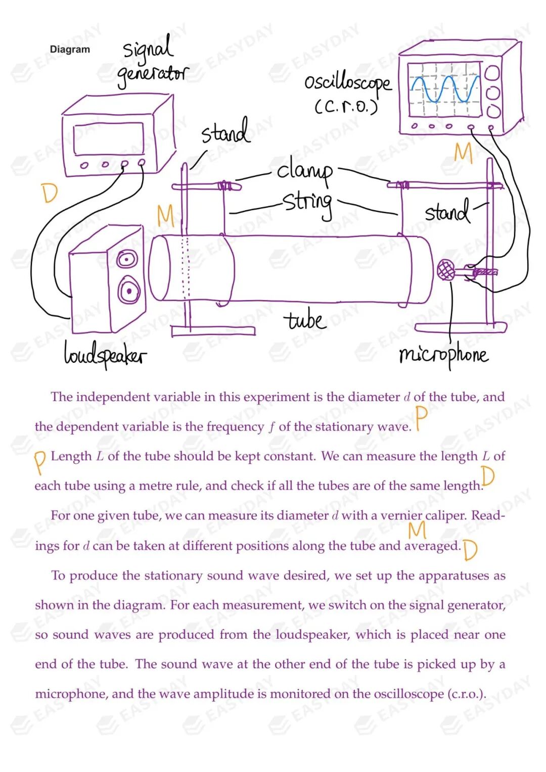 然而,这部分的书写应该也是条理非常明晰的。针对在问题定义中已经明确指出的自变量、应变量和不变量,我们依次针对这里的每个量的观测过程进行分别展开,它们分别用什么仪器、什么方案,如何准确测出?考生需要图文结合,将这些问题交待清楚。