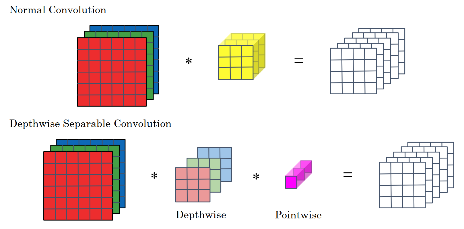Let’s see how the computations can be greatly reduced by breaking down this single convolution operation into a depthwise convolution followed by a pointwise convolution.