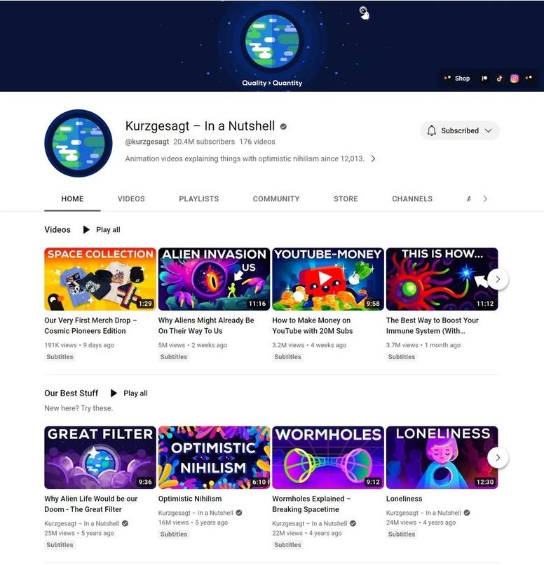 由此也发掘了这位宝藏播主,在 YouTube 平台已经发布了上百个各个学科领域的高质量科普,B站也找到了多个良心制作汉化翻译的搬运账号。他们家的视频比书可能还要更棒一点。