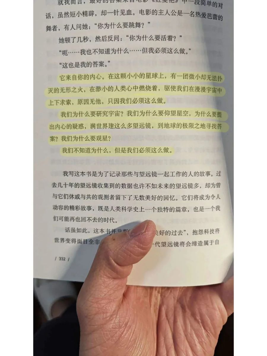 “我们为什么要观星?我们为什么要研究宇宙?我们为什么要仰望星空,为什么要提出内心的疑惑,满世界建造那么多望远镜,到地球的极限之地寻找答案?我们不知道为什么,但是我们必须这么做。”