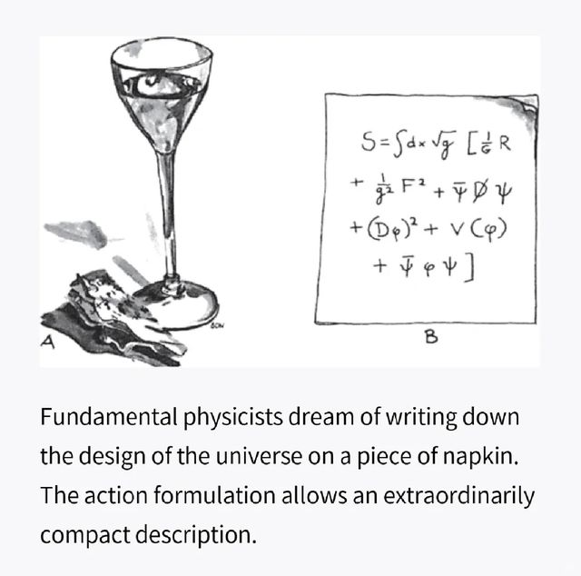 作者着了相当篇幅的笔墨介绍了场论(field theory)中极为核心的最小作用量原理(principle of least action)。只要我们接受物理世界理应具有的对称性,那么基于最小作用量原理,我们不仅可以全盘导出几何光学中的折反射定律、经典力学定律、电磁场理论,更令人惊叹的是,Einstein 的引力理论也仿佛一曲命中注定的命运交响曲,它必须就是这样,别无他法。