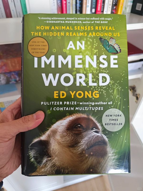 来自英国科普作家 Ed Yong 的科普佳作《An Immense World(无尽世界)》,主题关于动物们五花八门的感知世界的种种方式。对我这只数学物理狗而言,生物的科普去读英文原版还是有那么点小费劲,前前后后读了有3个月。但其内容非常有趣且开眼界,非常值得推荐。
