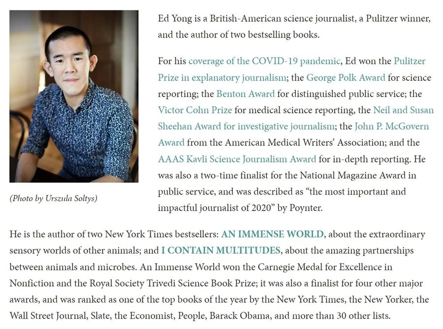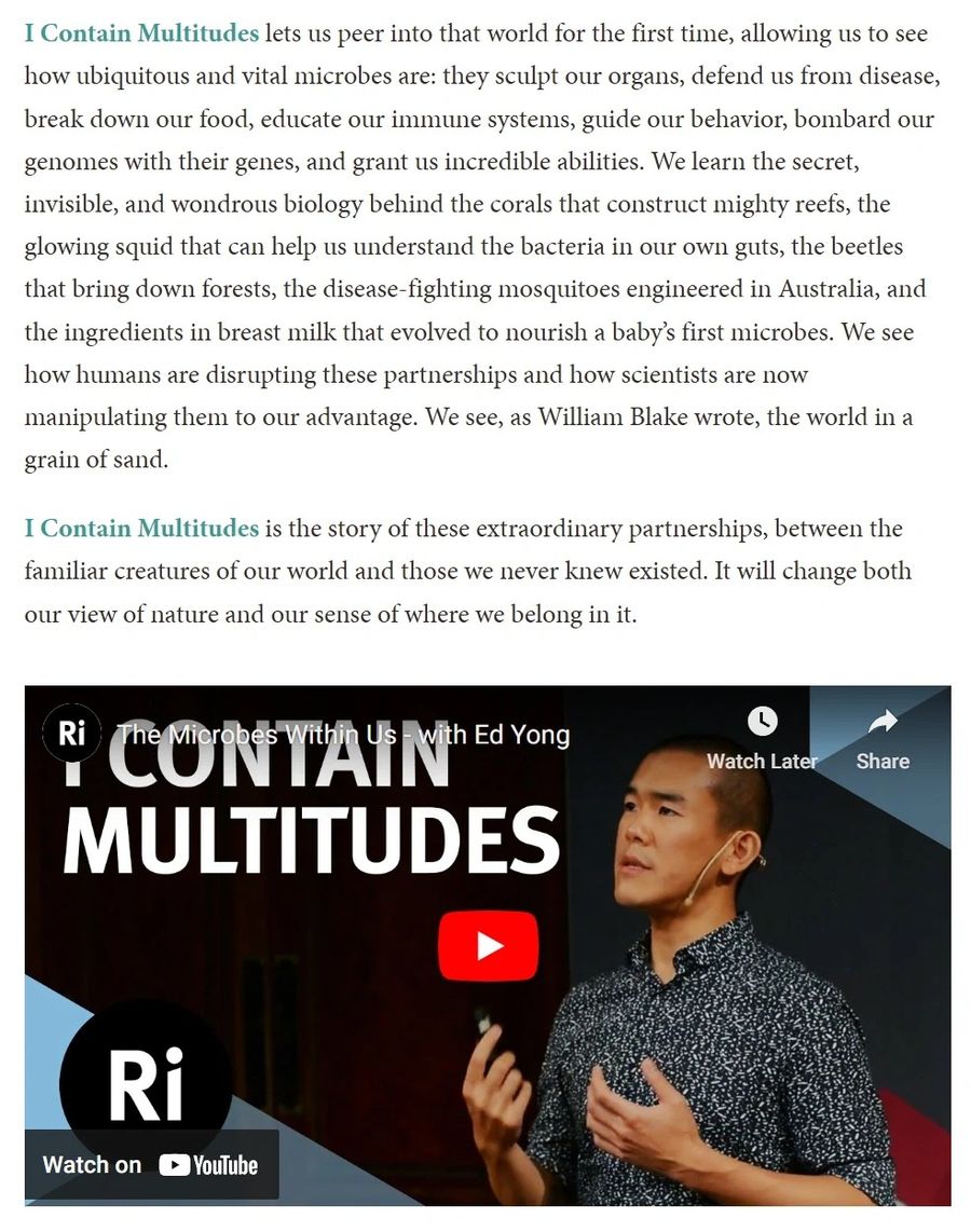 来自英国科普作家 Ed Yong 的关于微生物的硬核科普,非常非常棒,推荐指数:9.8/10