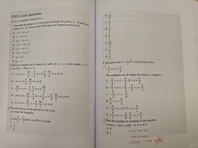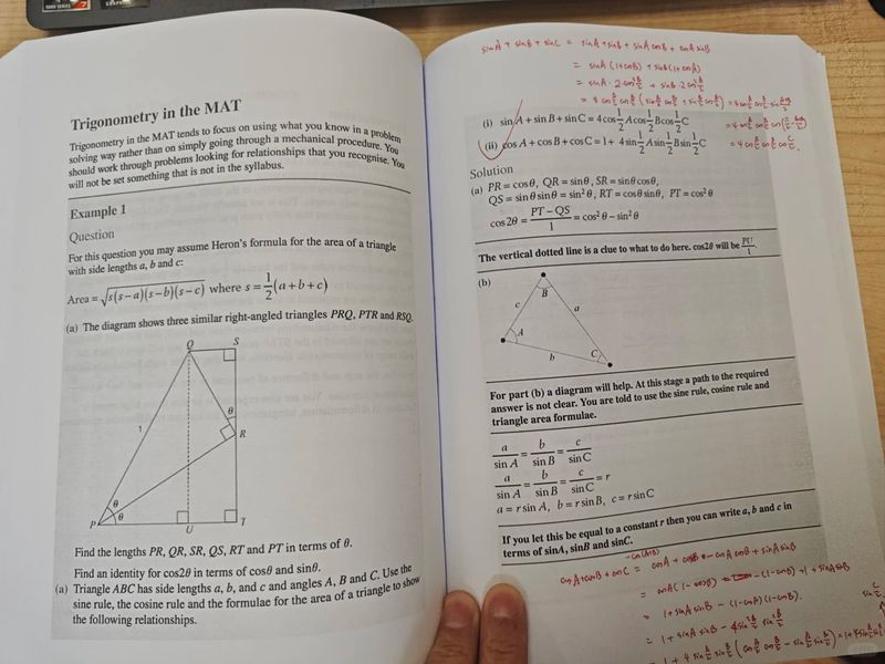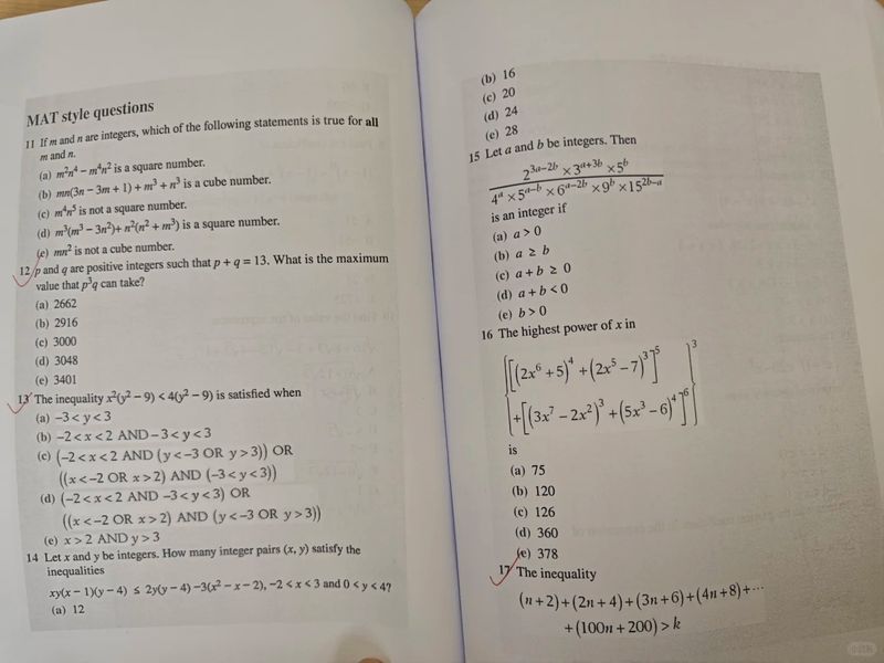 尤其是针对 TMUA 备考,由于 TMUA 真题数量不算多,因此作者们自编的不少 TMUA 风格的选择题是很好的补充资源。MAT 的考试形式自去年起变化较大,备考占比更大的选择题时,不仅书中自编的 MAT 风格的选择题依然适用,而且 TMUA 的练习也可以可以拿来操练。
