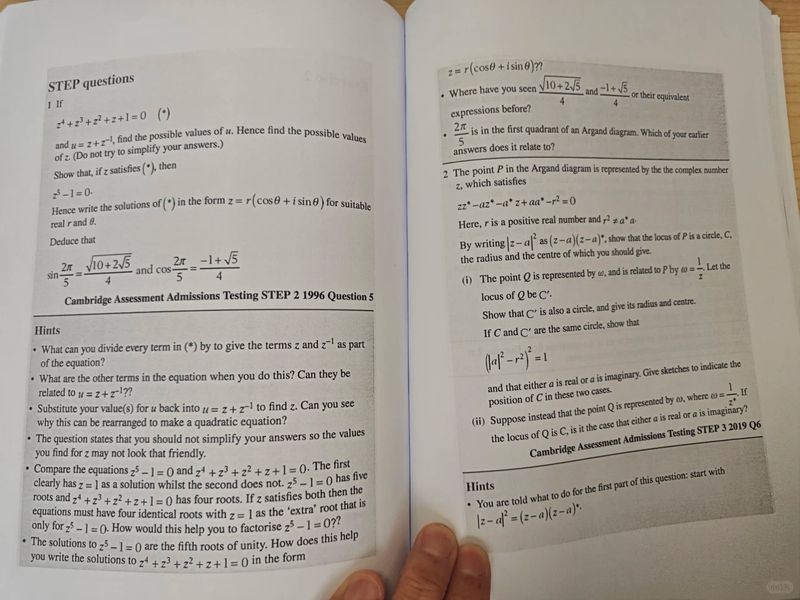 Zlibrary 上撸到的一本出版于2021年的 TMUA/MAT/STEP 英国大学数学专项入学笔试的备考教材,花了一周多的时间摸完了,觉得还真不错,推荐给备考这几项考试的同学们去啃一啃。