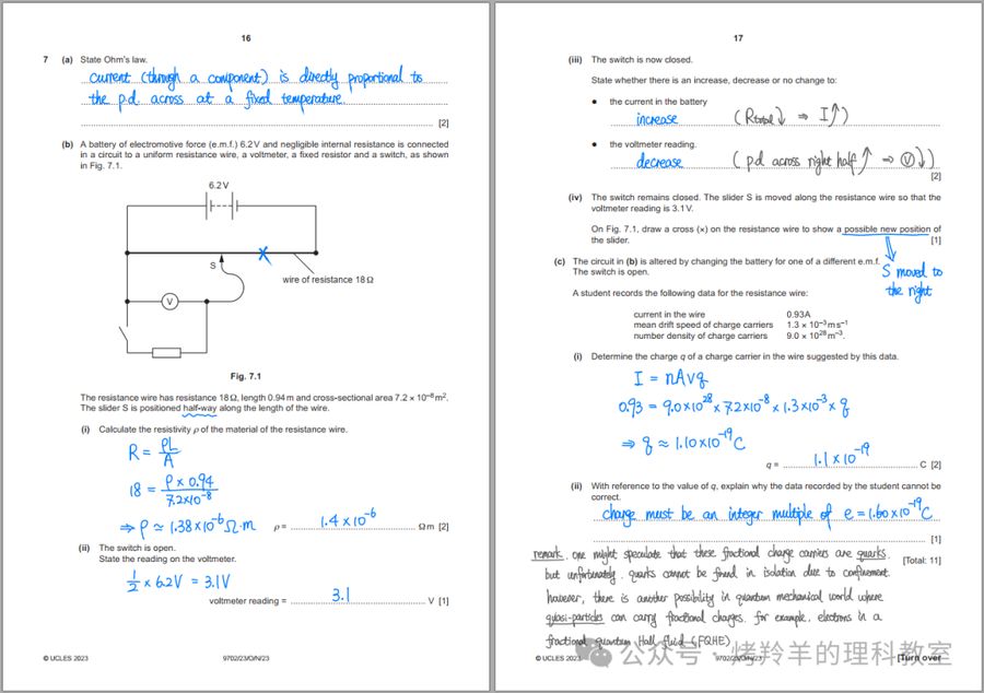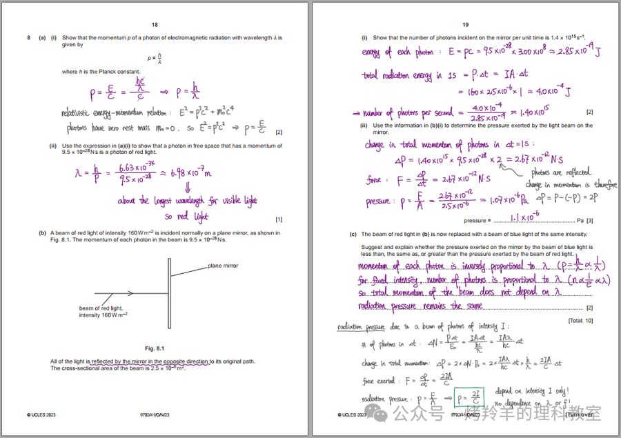 这个页面分享的是我整理的 CIE AS & A-Level 物理(9702)的手写解答。